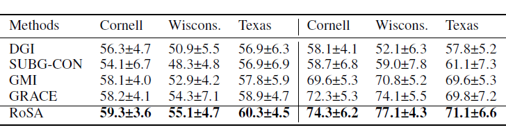 在同质、非同质和动态图数据集上的大量实验结果表明,我们的模型可以有效地应用于非对齐情况,并优于其他竞争对手。此外,我们在本工作中采用了简单带重启的随机游走作为子采样技术,如果在未来的工作中配备更强大的采样方法,RoSA 可能会取得更好的性能。