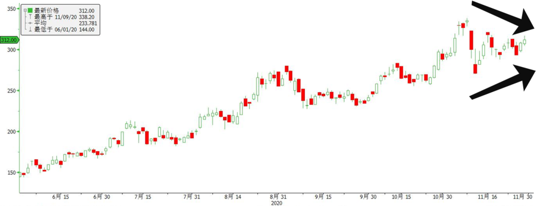 11月27日,是反垄断指南消息传出后的第14个股票交易日。被机构大幅加仓、年均涨幅一度超过220%的美团,在受利空影响的连续两日阴跌后,用这14个交易日走出了神奇的倒三角形K线走势。