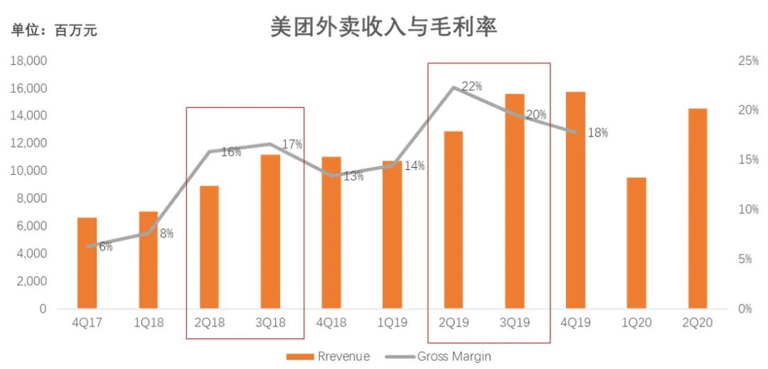 美团CFO陈少晖此前曾在2019年一季度的业绩会上透露过,外卖业务受到季节性因素的影响,而“二季度和三季度的外卖订单量更大,四季度和一季度相对较少。”