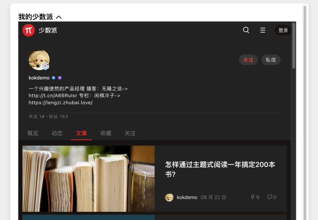 如果会写一点点 html ,你还可以给卡片里加上一些嵌入内容(iframe),比如说看少数派: