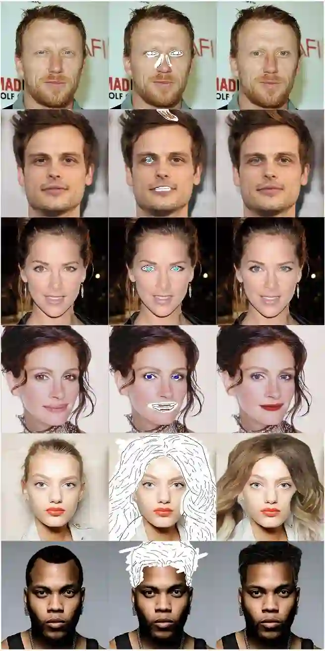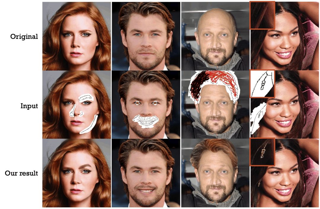 我们学习使用深度网络来编辑人像。我们的网络SC-FEGAN(即本项目)非常适合使用直观的用户输入与草图和颜色生成高质量的合成图像。我们使用SN-patchGAN鉴别器和Unet-like发生器和门控卷积层。