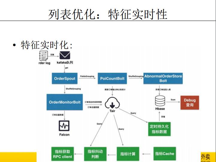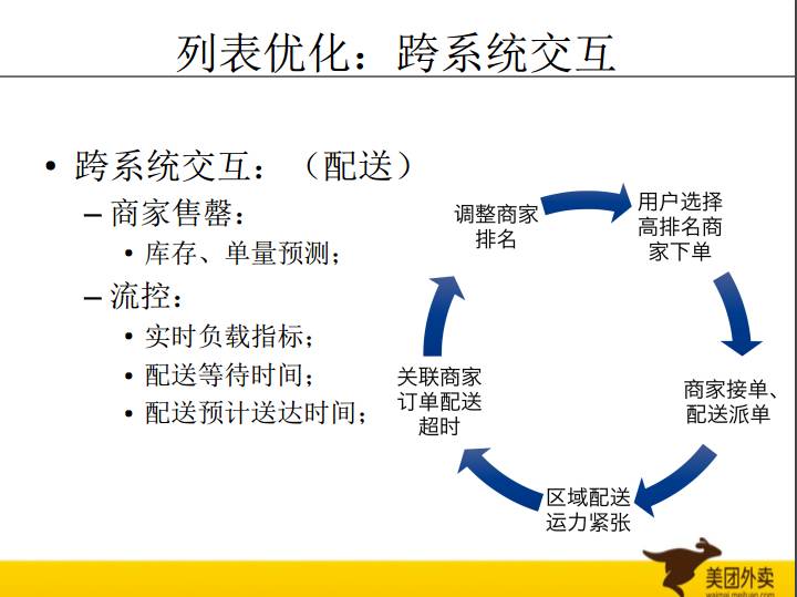 还有一个在这个里面比较头疼的地方,外卖跟传统的互联网有一些不一样的地方,会有一些非常强大的配送。配送会涉及到一些交互,例如商家配送时间变长了,这个时候我们反映在排序结果上。