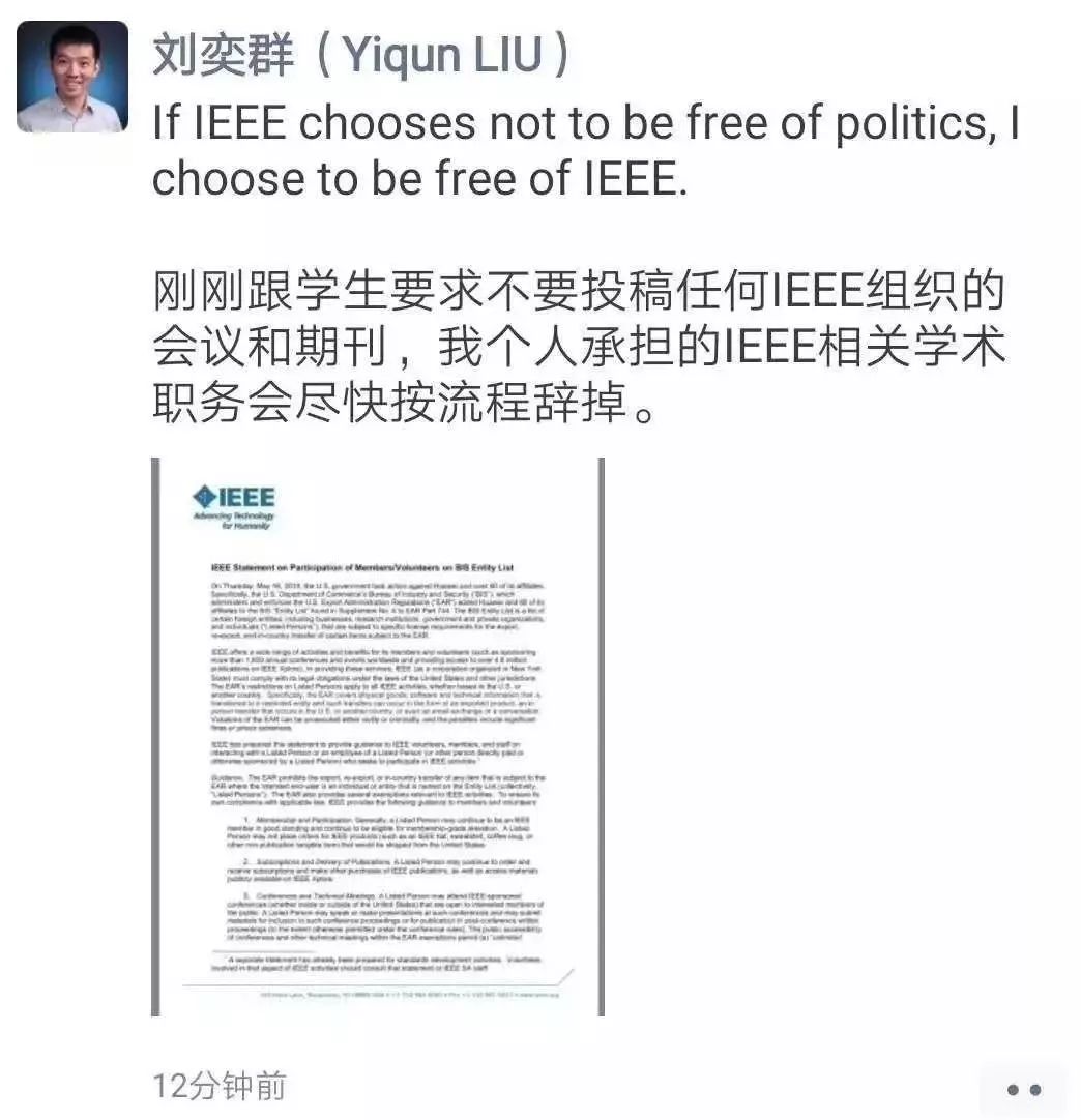 29日,北大、清华两位教授分别致信IEEE主席、发朋友圈,表示退出IEEE;