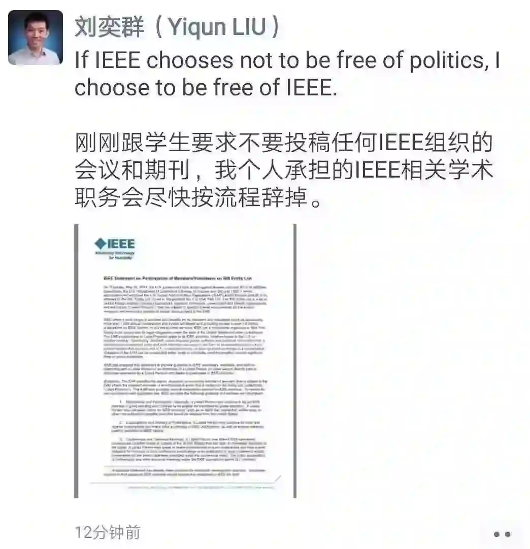 刚刚跟学生要求不要投稿任何 IEEE 组织的会议和期刊,我个人承担的 IEEE 相关学术职务会尽快按流程辞掉。
