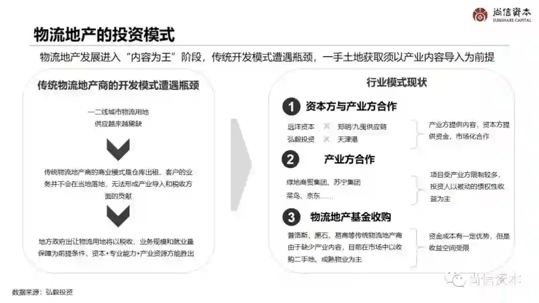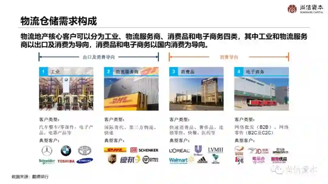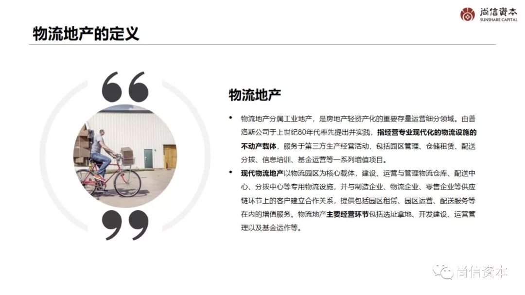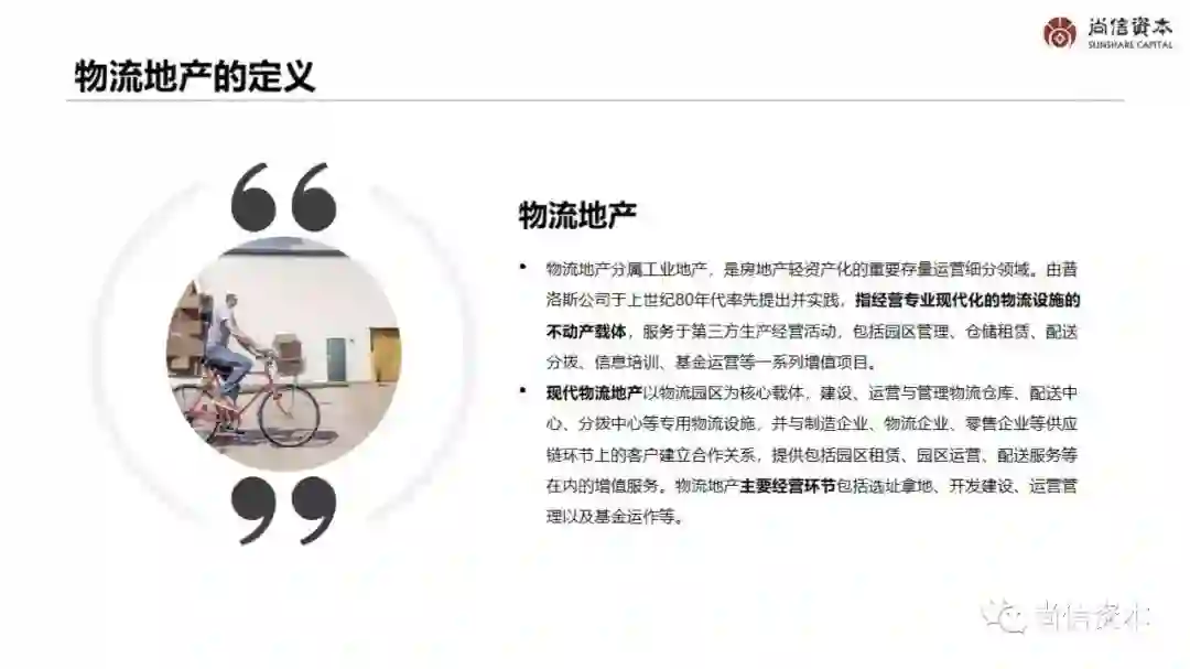 物流地产分属工业地产,是房地产轻资产化的重要存量运营细分领域。由普洛斯公司于上世纪80年代率先提出并实践,指经营专业现代化的物流设施的不动产载体,服务于第三方生产经营活动,包括园区管理、仓储租赁、配送分拨、信息培训、基金运营等一系列增值项目。