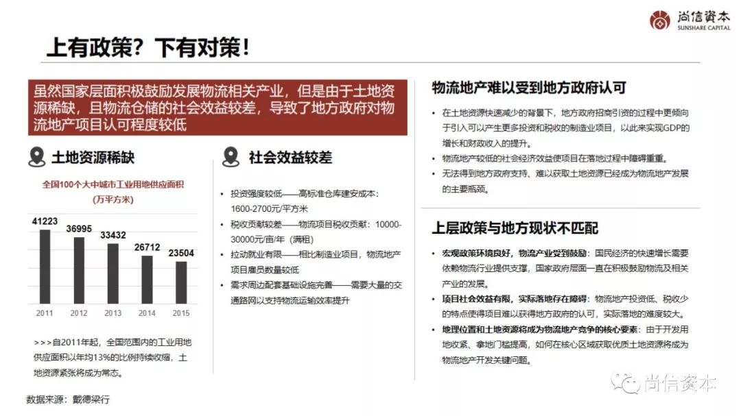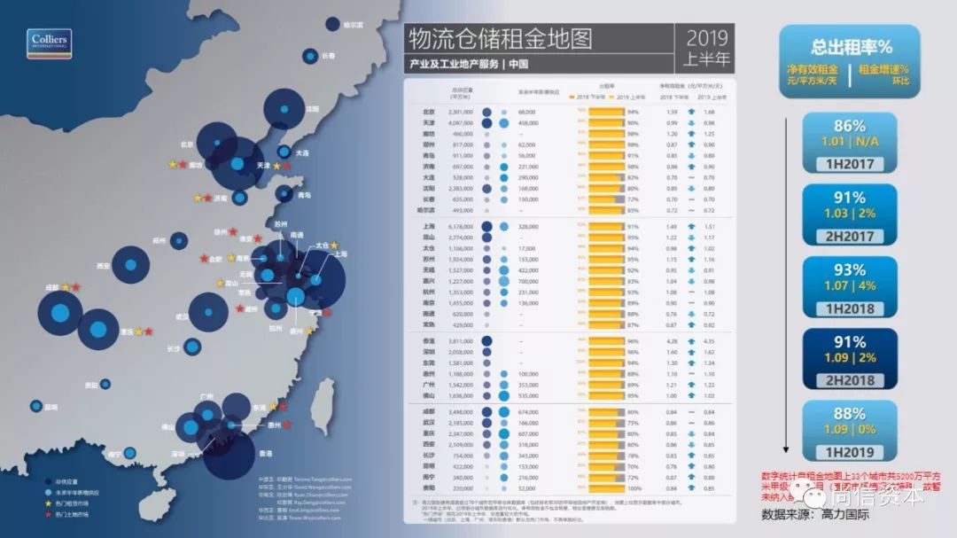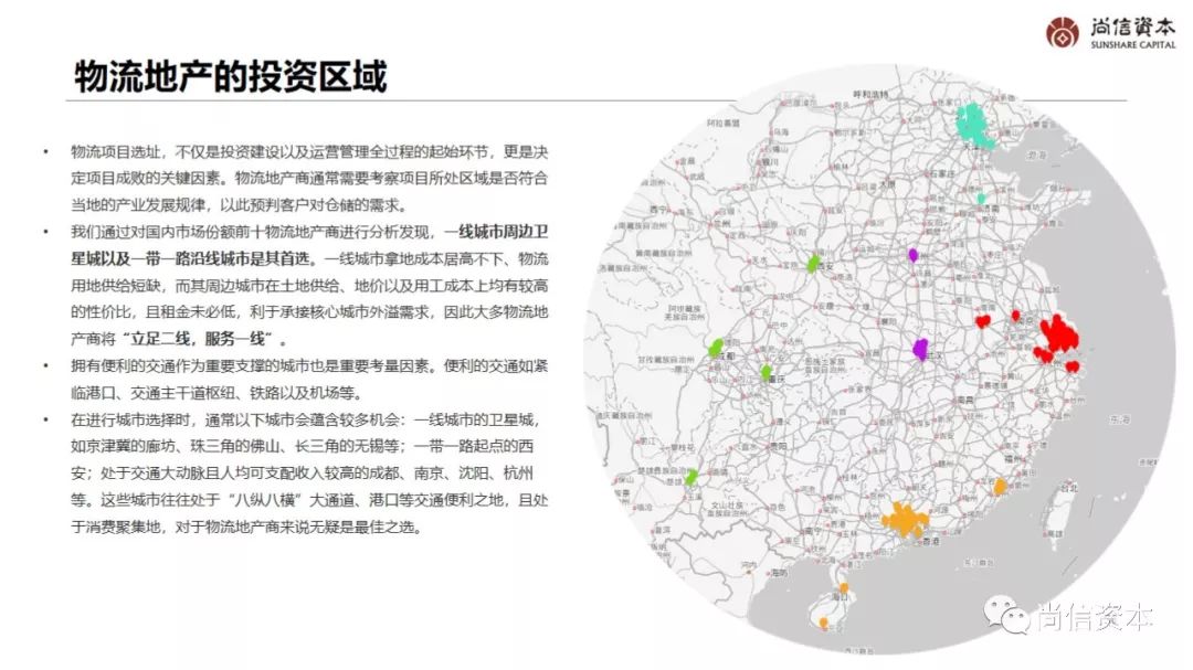 在进行城市选择时,通常以下城市会蕴含较多机会:一线城市的卫星城,如京津冀的廊坊、珠三角的佛山、长三角的无锡等;一带一路起点的西安;处于交通大动脉且人均可支配收入较高的成都、南京、沈阳、杭州等。这些城市往往处于“八纵八横”大通道、港口等交通便利之地,且处于消费聚集地,对于物流地产商来说无疑是最佳之选。