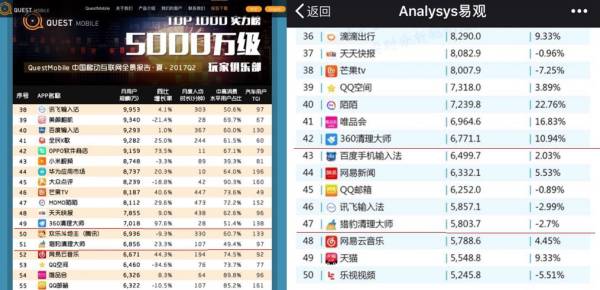 (左图是QM,右图是Anlysys易观发布的移动AppTop1000排名)