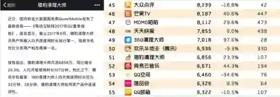 而就在猎豹转型之后的今天,根据最新QuestMobile、易观千帆、TalkingData等多家权威数据机构发布的数据,360清理大师的用户规模排名已反超猎豹清理大师成为“优化”品类第一。