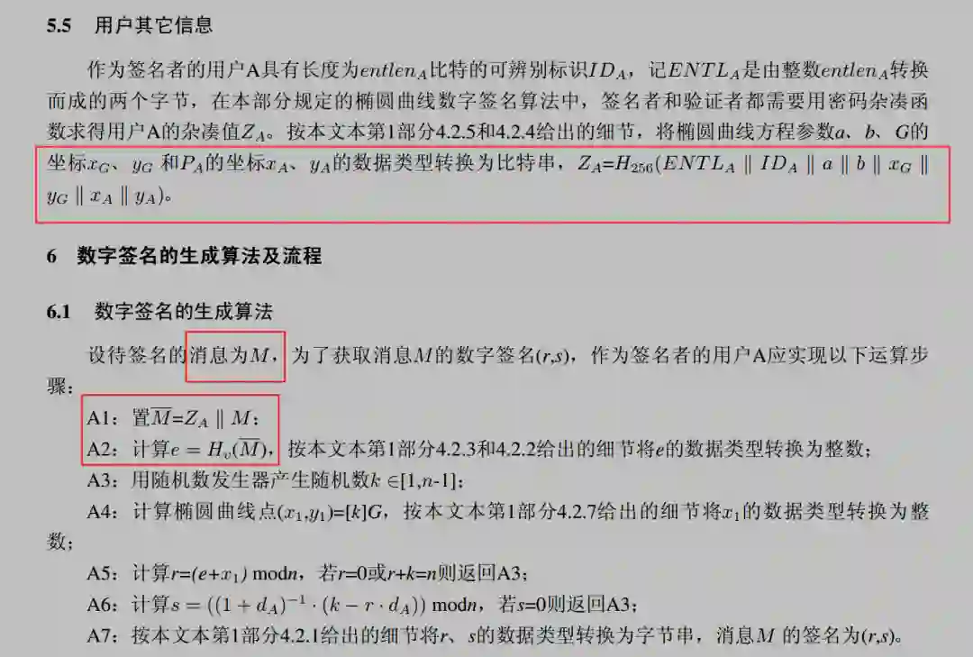 SM2规范中对消息签名时,除了要计算消息自身的SM3,同时SM2椭圆曲线参数和公钥都要参与到SM3的计算中来,SM2私钥签名是对最终的哈希结果做签名,这一规范定义是有点另类,这是与国际通用算法的一个主要差异: