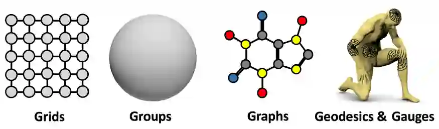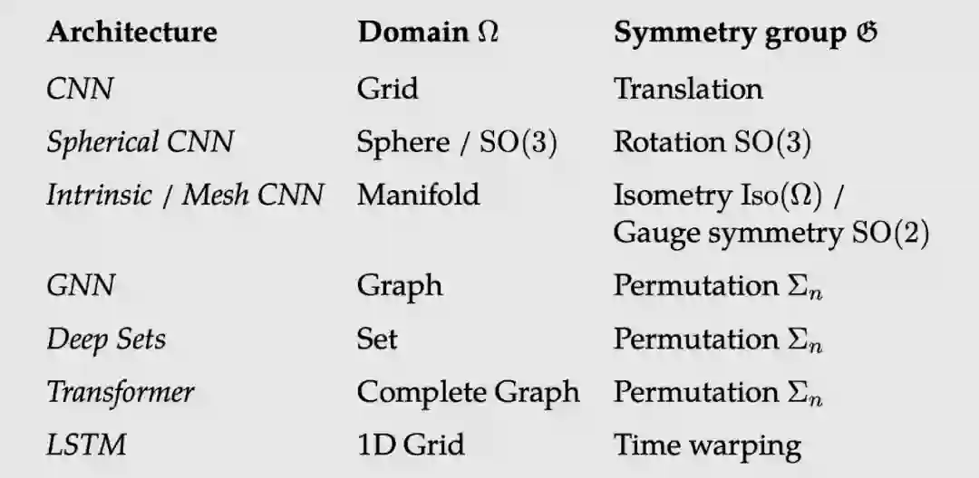 我们研究了流行的深度学习架构(CNNs, GNNs, transformer, LSTMs)的本质,并意识到,只要有一组合适的对称,我们就可以等价它们,它们都可以用一个通用的几何框架来表达。