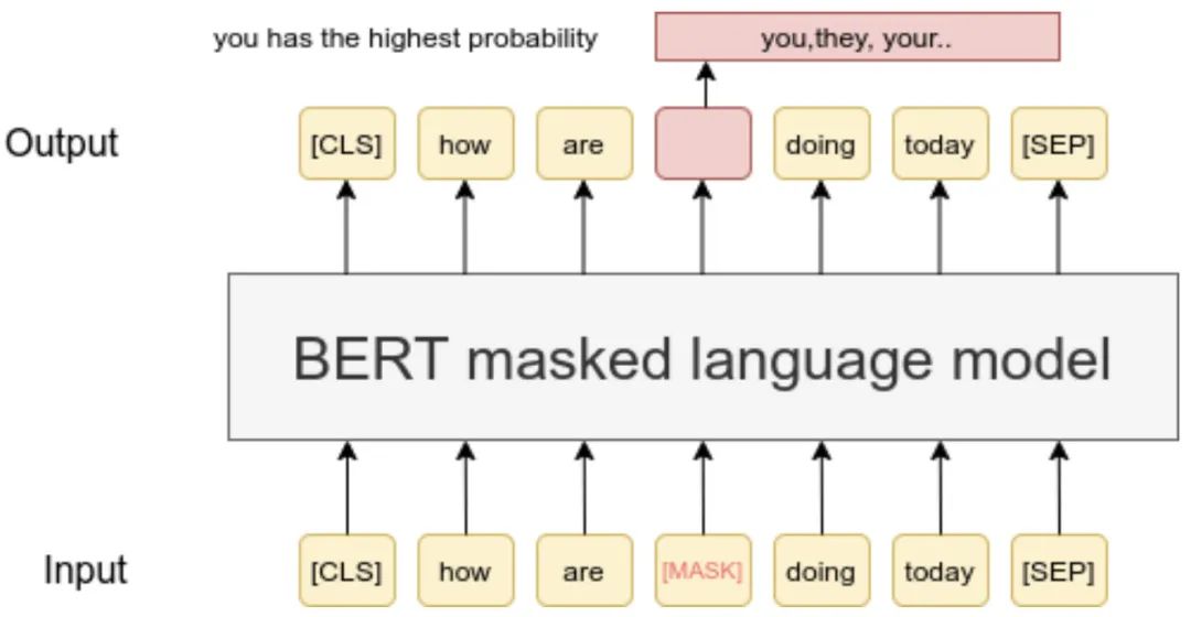 MLM的核心思想早在1953年就被Wilson Taylor[Wilson]提出,是指在训练时随机从输入语料中mask掉一些单,然后通过该词上下文来预测它(非常像让模型来做完形填空),如下图所以: