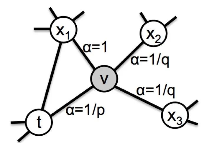 为了克服DeepWalk模型的random walk策略相对简单的问题,斯坦福大学的研究人员在2016年提出了Node2vec模型。该模型通过调整random walk权重的方法使得节点的embedding向量更倾向于体现网络的同质性或结构性。