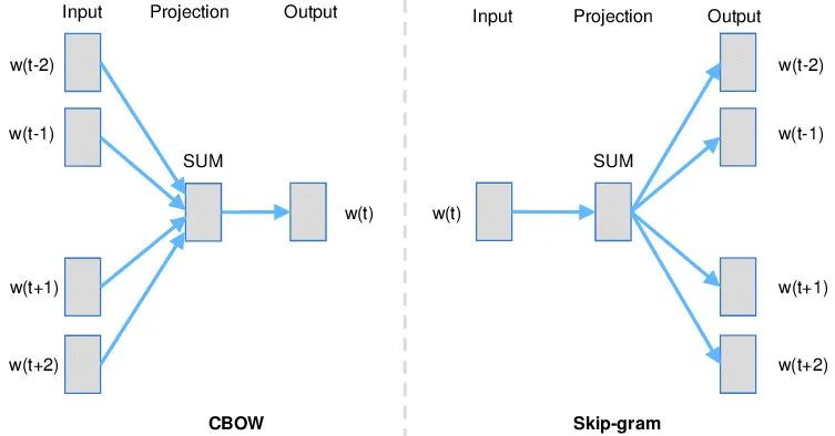 其中CBOW是采用词的上下文来预测该词,而Skip-gram则是采用词来预测其上下文。两者网络结构相似,通常所得到的词向量效果相差不大;但对于大型语料,Skip-gram要优于CBOW。