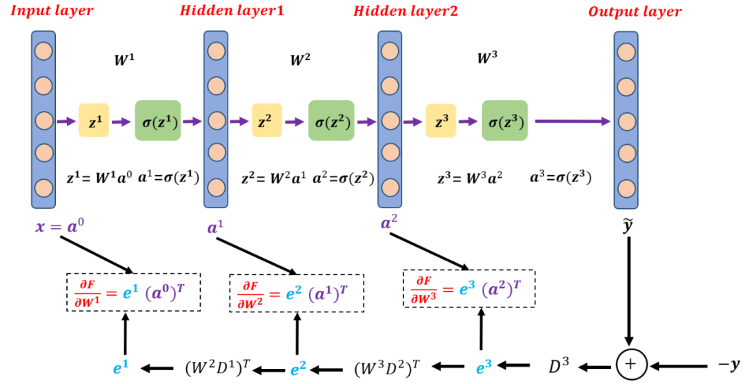 BP反向传播矩阵推导图示详解一文中在矩阵视角下对 BP 的原理进行了详细的介绍,神经网络中权重的梯度由前一层前向传播值与后一层的误差值整合计算得到。该文中也对吴恩达的斯坦福机器学习的讲义中的相关部分进行了证明。