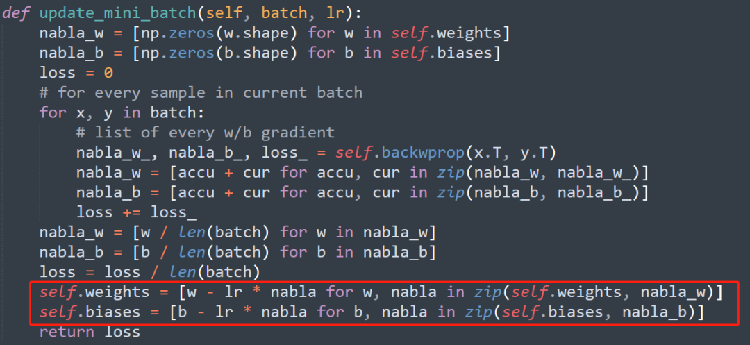 BP 的矩阵形式的推导的好处在于它的矩阵表示形式对编程非常有指导意义,当前有很多的热门的深度学习框架,例如 Pytorch 和 Tensorflow,像这种深度学习框架集成性很高,神经网络中 BP 更新参数的过程几行代码就搞定,这对于从代码中理解其原理造成了一定的困难。