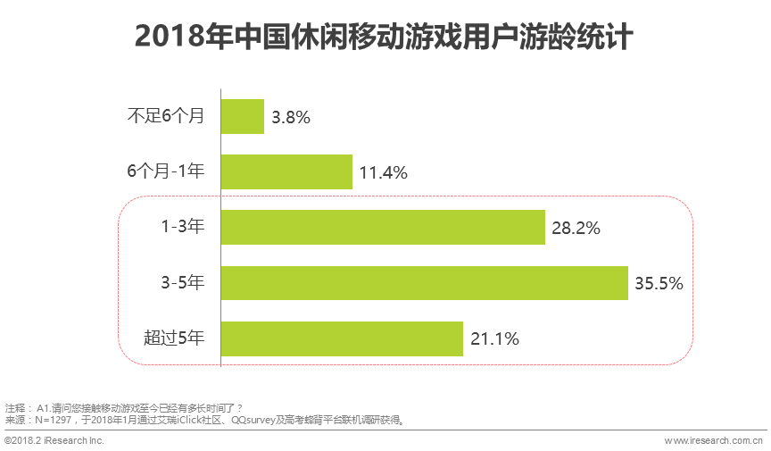 中国休闲移动游戏用户中有高达84.8%的用户接触移动游戏的时长超过1年,其中更是有56.6%的用户是玩移动游戏已超过3年的“老司机”。这也表示着整体休闲移动玩家已经具有较好的游戏市场教育。