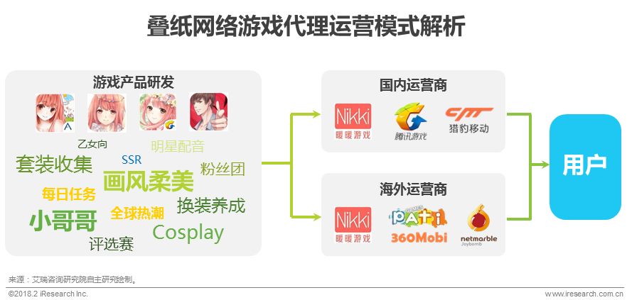 产品运营方面,叠纸网络选择依靠当地市场中的优秀运营商来代理运营旗下产品。中国大陆的腾讯游戏、猎豹移动(原金山网络),台湾地区的Netmarble,韩国的Pati Games以及泰国的360Mobi等都与叠纸网络有着深入的合作。而叠纸网络这样依靠代理运营的模式,也是当下市场中中小规模游戏研发商会经常使用的游戏运营方法。