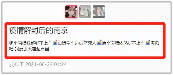 去年8月解封后的南京,山姆、商超都找不到停车位。