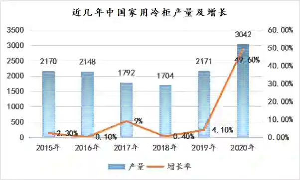 就是那种以前学校小卖部能装很多雪糕的大冰柜,疫情开始的2020年,家用冰柜的年增长量就从个位数跳涨到十位数。