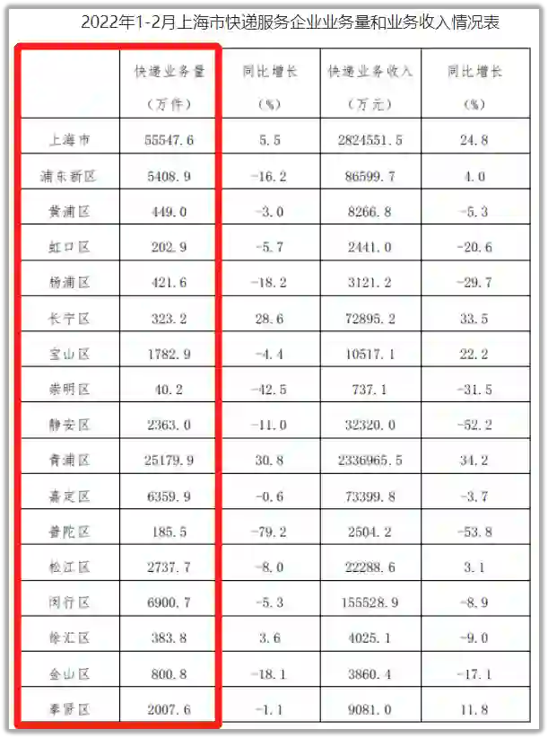 今年截至2月末,上海市快递服务企业业务量累计完成5.6亿件,单单2月上海快递服务企业业务量完成2.6亿件,相当于每天有929万件快递量。