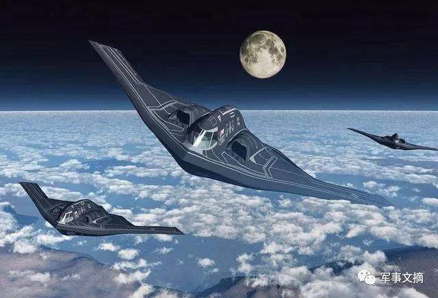 美国的B-2隐形轰炸机在高空编队飞行遂行作战任务效果图
