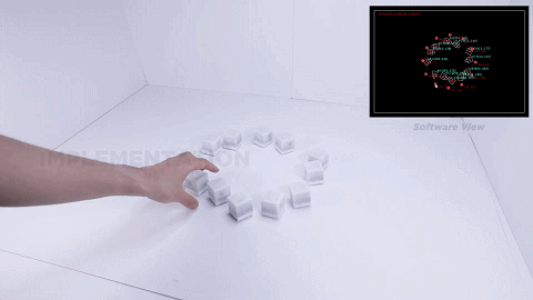 MIT Media Lab 的机器人专家 Ken Nakagaki 在 Toio 的基础上做了一些修改:增加了一个小型伺服电机,该电机可以从机器人的顶端戳出一小根针。这个小小的改进赋予了 Toio 巨大的能量,使其拥有了换壳的能力,就像寄居蟹一样。