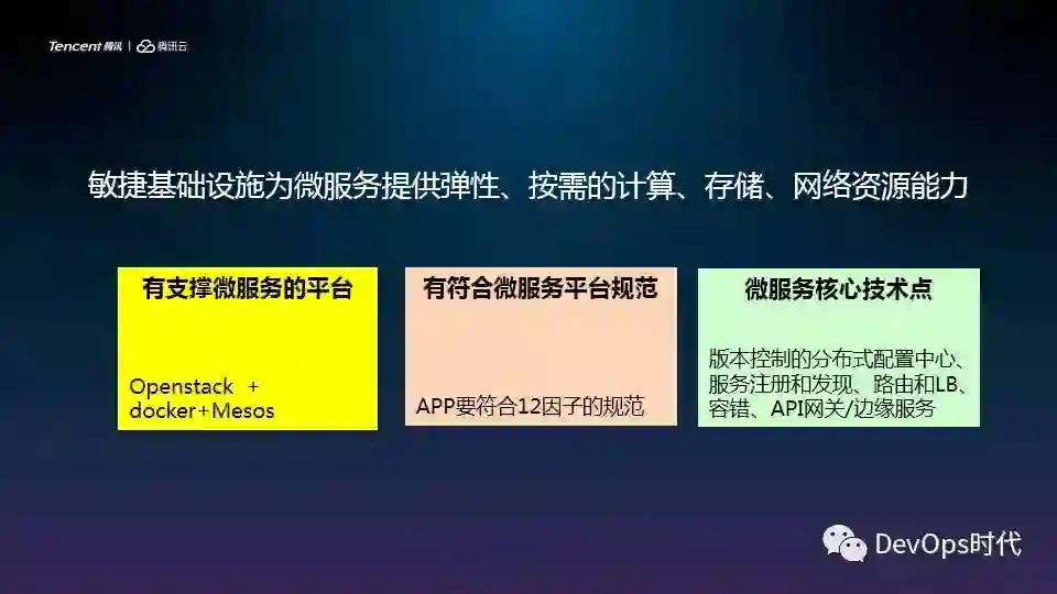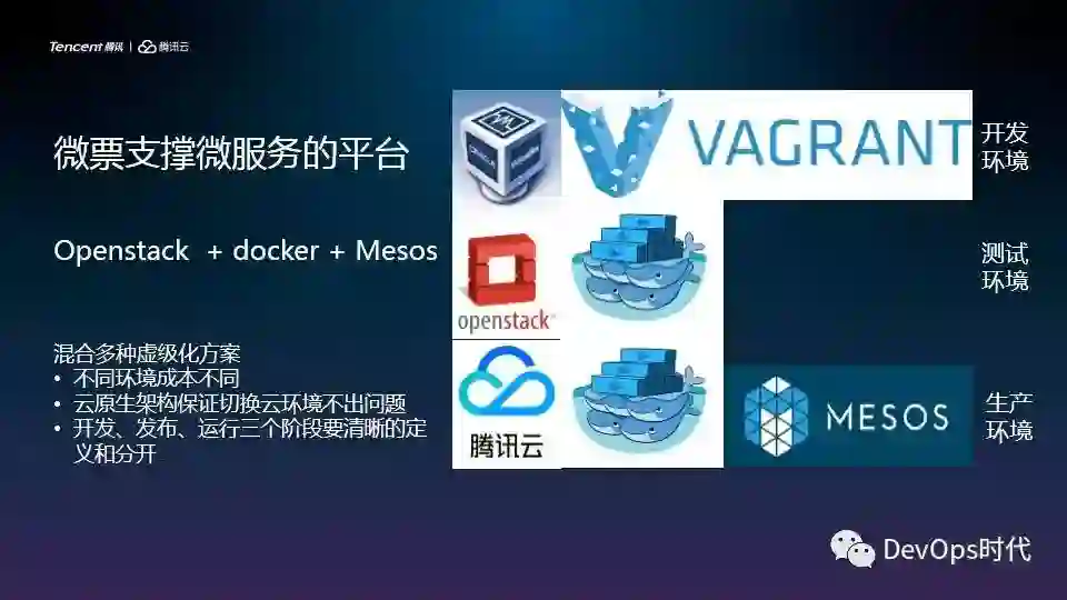 第一个是有支撑微服务的平台,我们选择的是OpenStack+Docker+Mesos;