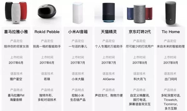 2017 年,看到国外科技巨头纷纷布局,国内又坐不住了,各个公司在那一年扎堆推出了自己的产品。