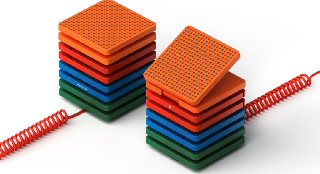 而可拆卸的模块让人不由联想到乐高积木,同时为了讨好年轻人,Raven-H 在颜色上借鉴了宜家的配件主色:橘、红、蓝、绿。材料上的颜色并非直接喷涂,而是使用了素材上色,把它掰开看,里面的颜色也是一致的。