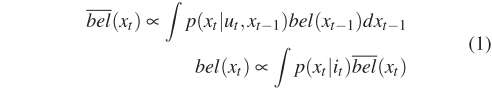 其中bel(x)为机器人的场景置信度,u为里程计数据,i为输入图像,p(x_t | i_t)表示当前图像的场景预测,p(x_t | u_t, x_t−1)是预定义的参数,用于描述置信度如何随着机器人的里程计变化,作者将该参数设为:机器人运动时为1/19 ,静止时为1。