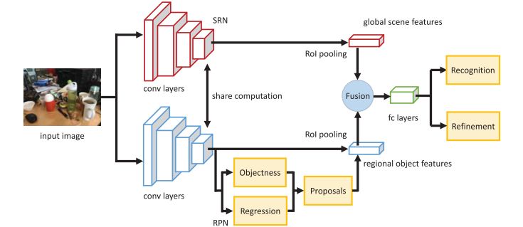 Recognition Network (SRN);区域提议网络Region Proposal Network (RPN);对象识别网络Object Recognition Network (ORN)。这三个网络共享卷积计算