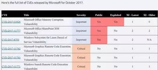 雷锋网消息,北京时间10月11日凌晨,微软发布了新一轮安全更新,修复了多个安全漏洞,其中包括一个 Office 高危漏洞(CVE-2017-11826)及 Microsoft Windows SMB Server 远程代码执行漏洞(CVE-2017-11780)。