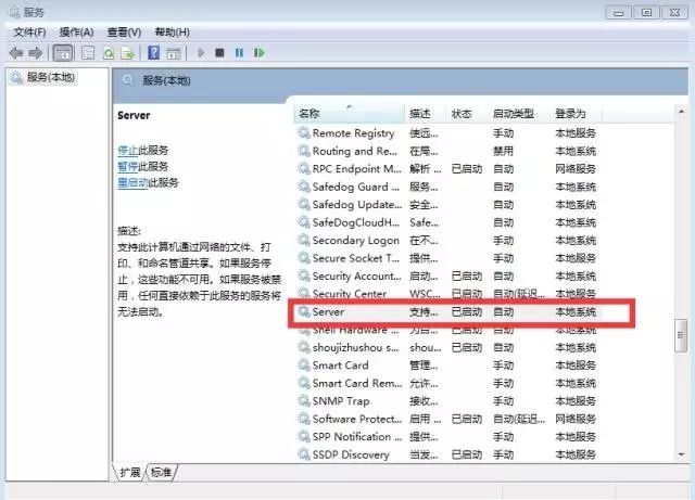 13、Windows 7系统需要关闭Server服务才能够禁用445端口的连接。关闭操作系统的server服务:同时输入win键和R,输入services.msc,进入控制台。