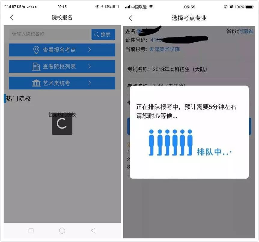 画室的学生5点钟起来死守报考通道,等着拼手速。