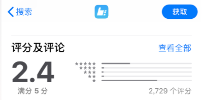 两天之内,应用评分低至2.4,多了几千条1星差评。