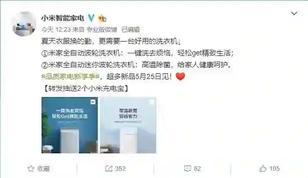 小米家电添新成员:5月25日推两款全自动波轮洗衣机