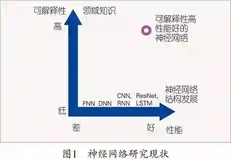图1阐述了神经网络相关领域的研究现状,横向来看,由于技术的进步和研究者的增加,神经网络的结构框架正在逐步得到更新和扩展,模型的复杂度越来越高。随着神经网络结构框架的更新,模型的基本能力得到增强,在各个任务上的性能也都能获得提升。然而,现在的模型可解释性不足,很多时候都无法理解为什么网络更新后性能就能获得提升。将图1纵向来看,如果我们将神经网络应用到某个领域的同时加入相关的领域知识,针对该特定应用领域设计算法来理解网络,便能大大提高神经网络的可解释性。例如在汉字识别中,通过分析汉字的本质特性,即每个汉字都是由相应的偏旁部首组成,不仅能更好地提升模型性能,增强模型的可解释性,还能克服神经网络对数据的依赖性,使得神经网络具备少量样本学习甚至零样本学习的能力,更符合人类的学习方式。再比如语音信号处理,通过分析语音信号的本质特性,例如谐波特性、包络特性等,设计的语音处理网络也能收获更好的性能并增强可解释性。所以,正如图1右上角红色圆圈所示,只有当领域知识和神经网络相结合,设计出面向领域定制的神经网络时,才能在获得高性能的同时具有更好的可解释性。
