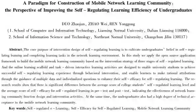 关键词:自我调节学习;自我调节学习效能感;移动网络学习社区
