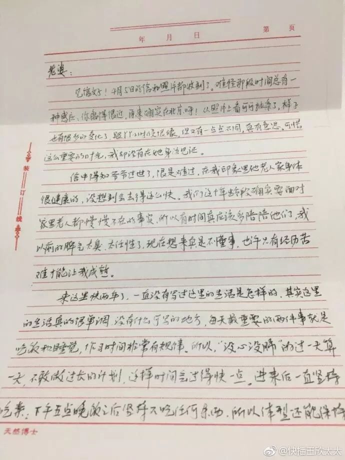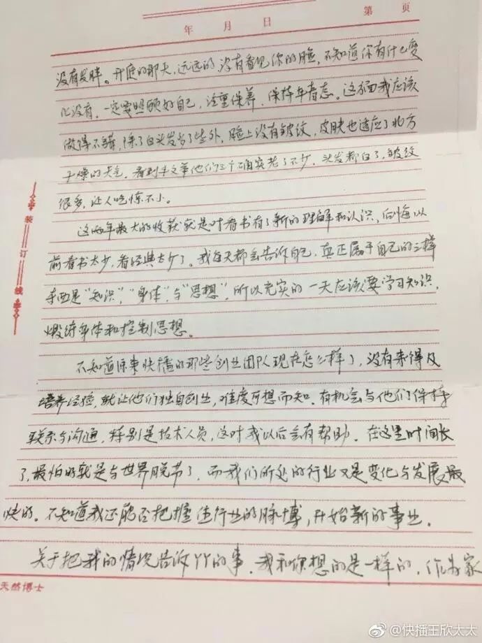 这是王欣狱中的信件首次被公开,揭示了王欣的狱中生活。过去的已过去,王欣也已再次出发,祝福王欣。