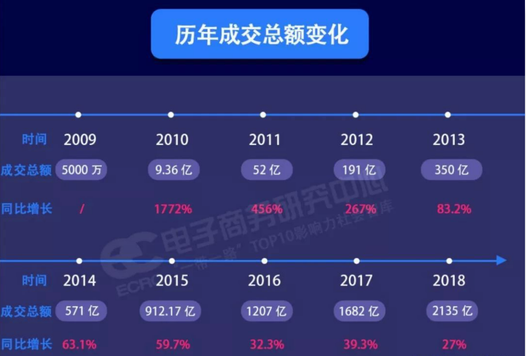 就这样,在2009年,只有27个商家参与的第一届双十一诞生了。
