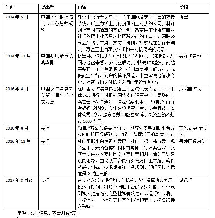 2017年1月13日下午,《中国人民银行办公厅关于实施支付机构客户备付金集中存管有关事项的通知》公布,要求第三方支付机构的客户备付金统一由央行集中存管。业内人士称,此举也是为“网联”平台的建立做准备。