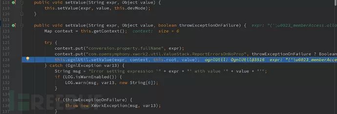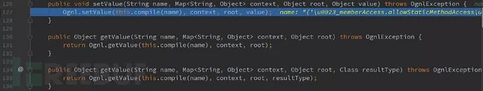 发现在里面封装了一个setValue类,跟入ognlUtil.setValue,会进入到xwork-core-2.1.16.jar!com/opensymphony/xwork2/ognl/OgnlUtil中,这里又封装了一遍setValue类,最终调用了Ognl中的setValue方法