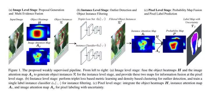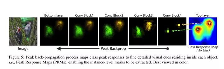 此论文的主要发现在于,在分类网络中, CAM 的 peak response 基本上可以定位被分类物体,而通过 peak 的反向传播追根溯源,可以找到被分类物体的全貌。该论文应该是第一篇用于 Instance Segmentation 的 Image-Level supervised 工作。