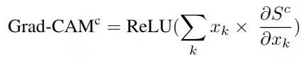 最后 inference 的时候,dropout 依然开启,多次推理得到 N 个 CAM, 采用了 Grad-CAM 的方式计算,即对每一类进行梯度加权叠加: