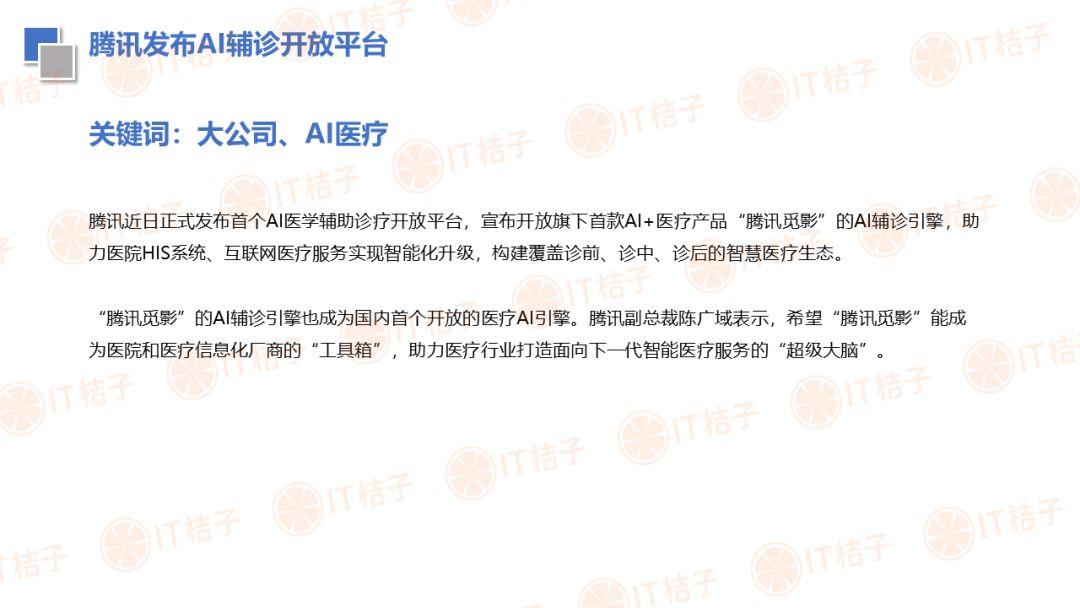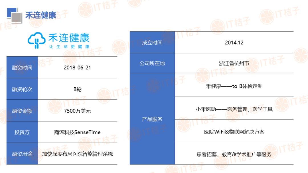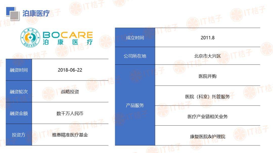 IT 桔子也顺应大健康投资热潮推出了医疗健康周报和项目拆解两个新栏目。IT 桔子医疗健康周报将从投融资动作、政策风向、业内动态等解读行业最新变化。项目拆解将从企业团队建设、产品技术、市场规模、商业模式等方面挖掘企业亮点与价值,为医疗创投提供参考。