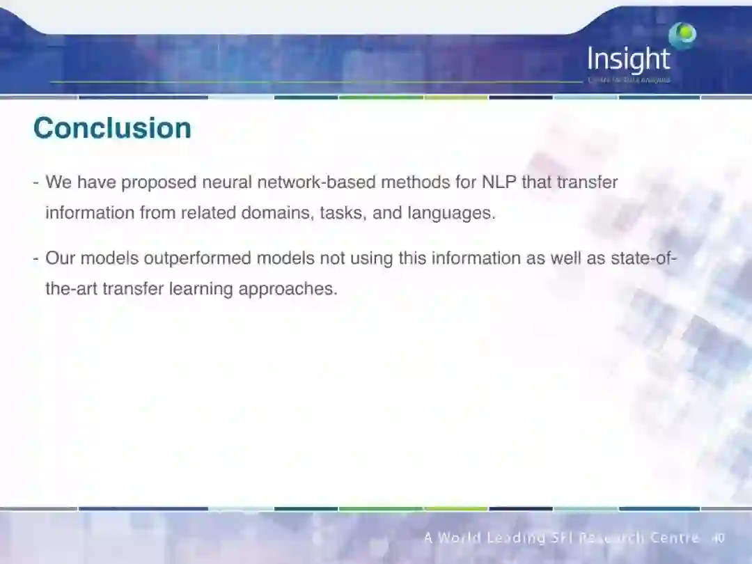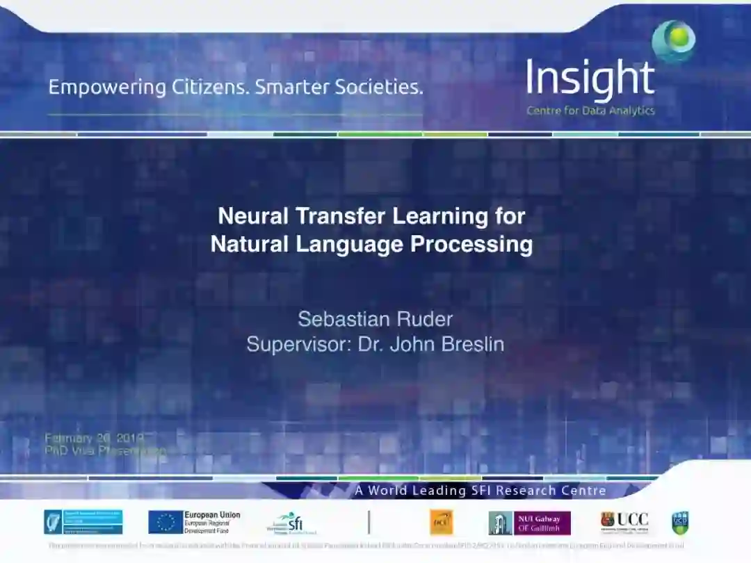 Sebastian Ruder博士的答辩PPT《Neural Transfer Learning for Natural Language Processing》介绍了面向自然语言的迁移学习的动机、研究现状、缺陷以及自己的工作。