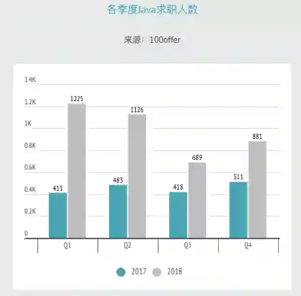 据100offer报告显示:2018年Java人才市场「高开低走」的动荡局势。整体求职难度变大,且全年波动更剧烈,淡旺季区别明显。企业发出的Java面邀总数几个季度连续下跌,Q4 甚至比去年同期下降了 17%。