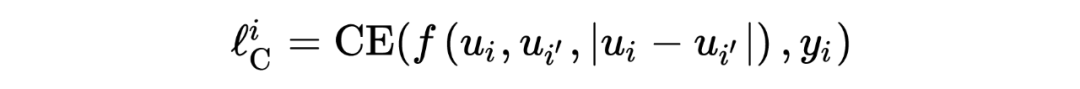 实例鉴别损失主要集中在区分正对,而在区分矛盾和蕴涵方面没有明确的监督。因此,为了促进模型对矛盾和蕴含的推理,本文联合优化了蕴含矛盾推理目标函数。 本文采用 softmax-based cross-entropy 作为目标函数,具体形式为: