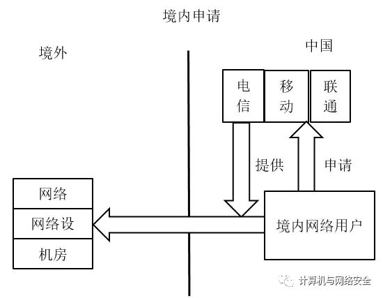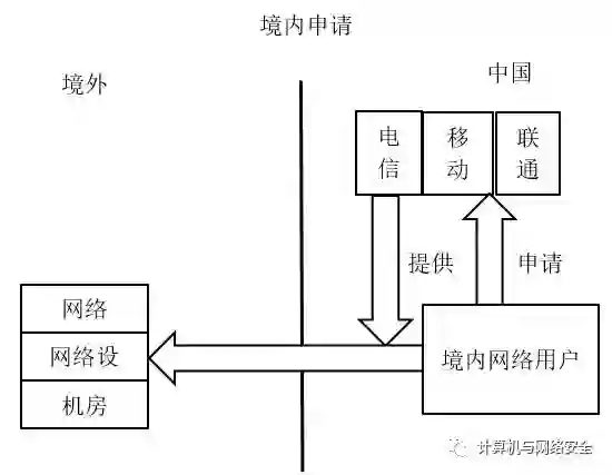1、从中国境内发起,直接租用前述3家基础电信运营商的国际专线(包括VPN)与境外网络和设备连接。