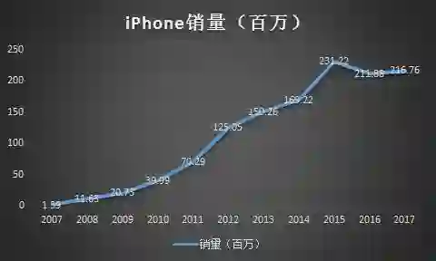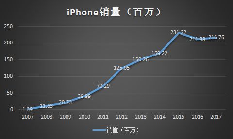 随后的 10 年,iPhone 的销量就是爆炸性的增长,从 2007 年卖出 139 万部手机,增加到巅峰时期的一年 2.3 亿部,增加了 166 倍。